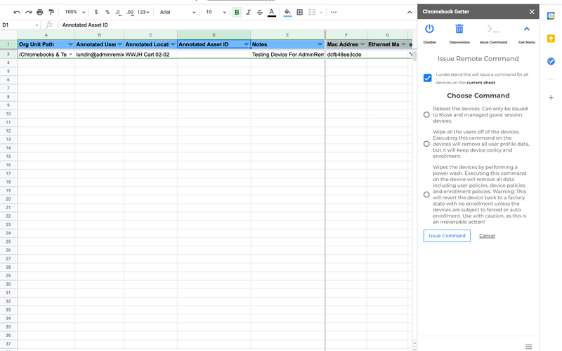Use Chromebook Getter to manage your Chromebook fleet inside Google sheets.